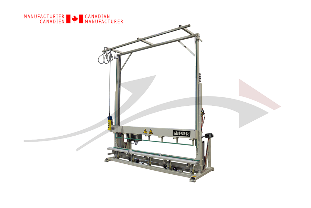 Serrage en place de la fenêtre est assuré par le frein du moteur de la mâchoire supérieure qui permet de demeurer actionné sans pression d’air ou d’électricité. La fenêtre reste sécuriser dans la station de travail en tout temps.