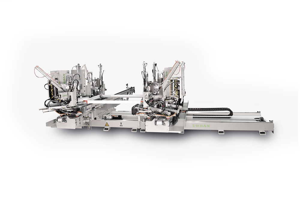 The automatic adjustment of the fusing time to different cross sections of profiles, the click-stop system and the integrated frame limitation of 40 to 200 mm (optionally 240 mm) ensure excellent flexibility. Electronic positioning of the axes X and Y via AC servo-motors which are disconnected during the welding process (no position control).