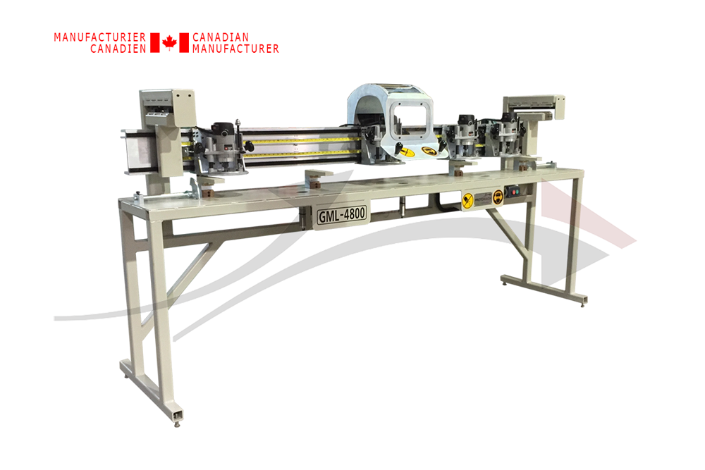- Appareil à mouvement manuel pour la préparation des cadres de porte non standard à 4 toupies ajustables et rétractables.